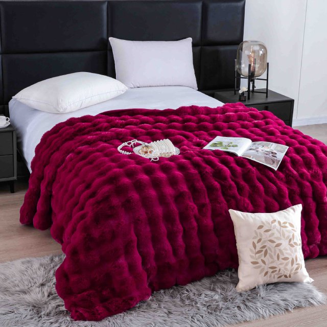 Луксозно одеяло с изкуствен заешки косъм – бордо – FB1-09