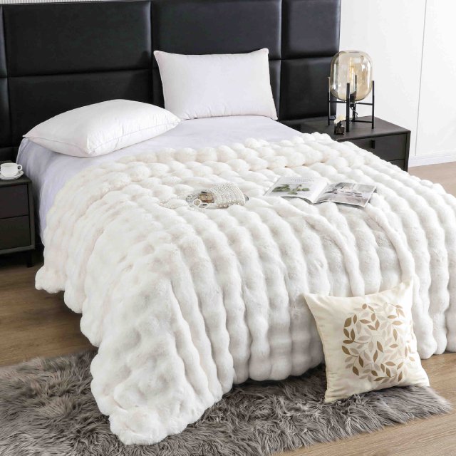 Луксозно одеяло с изкуствен заешки косъм – бяло – FB1-10