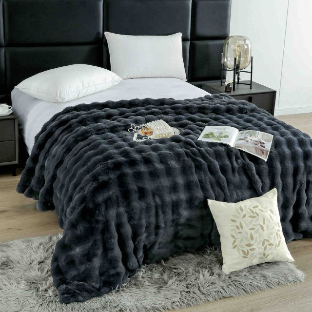 Луксозно одеяло с изкуствен заешки косъм – графит – FB1-07