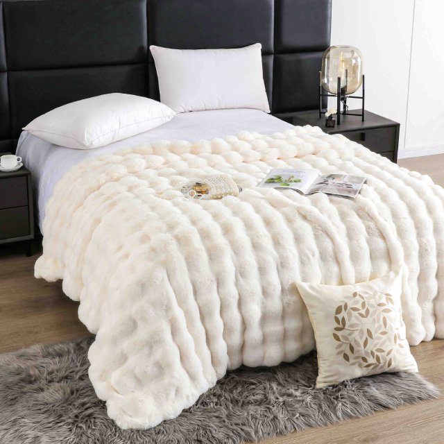 Луксозно одеяло с изкуствен заешки косъм – крем – FB1 - 01