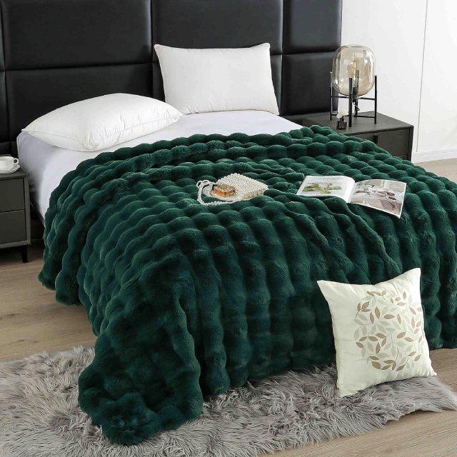 Луксозно одеяло с изкуствен заешки косъм – тъмнозелено – FB1-06