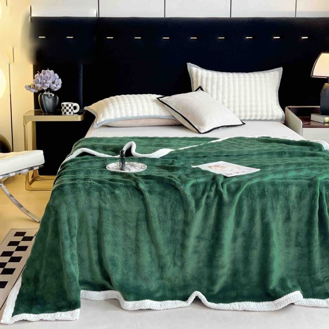 Плюшено одеяло с къс изкуствен заешки косъм – тъмнозелено – FJ-05
