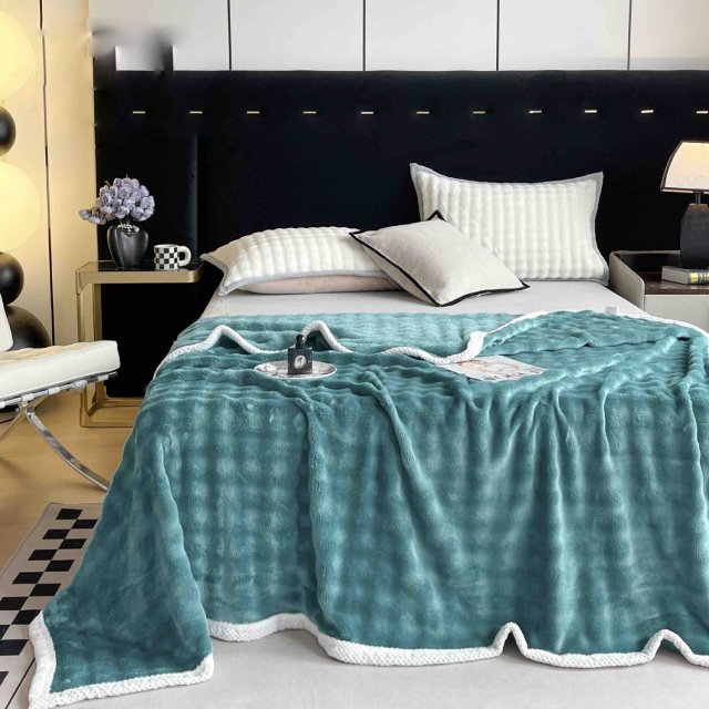 Плюшено одеяло с къс изкуствен заешки косъм – тюркоаз – FJ-06
