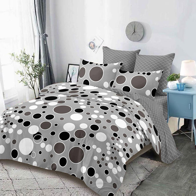 Спално бельо от 100% памук – сиво с кръгове - C8-449
